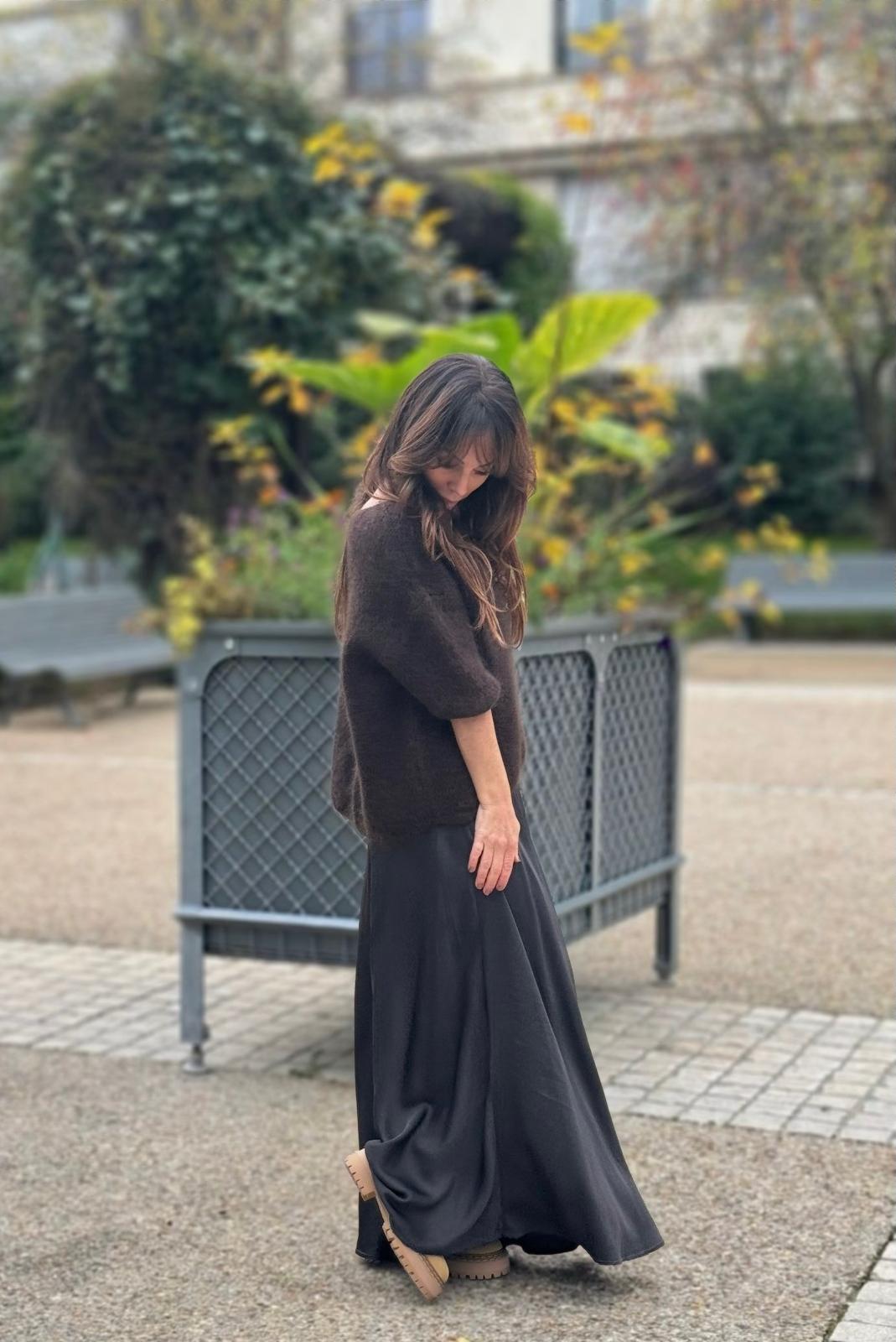 Cette jupe longue satinée, vous accompagnera dans vos journées comme dans vos soirées pour un look casual comme habillé selon la manière dont vous l’utiliserez. Elle est la pièce indispensable à votre dressing symbole d’ élégance en toutes circonstances