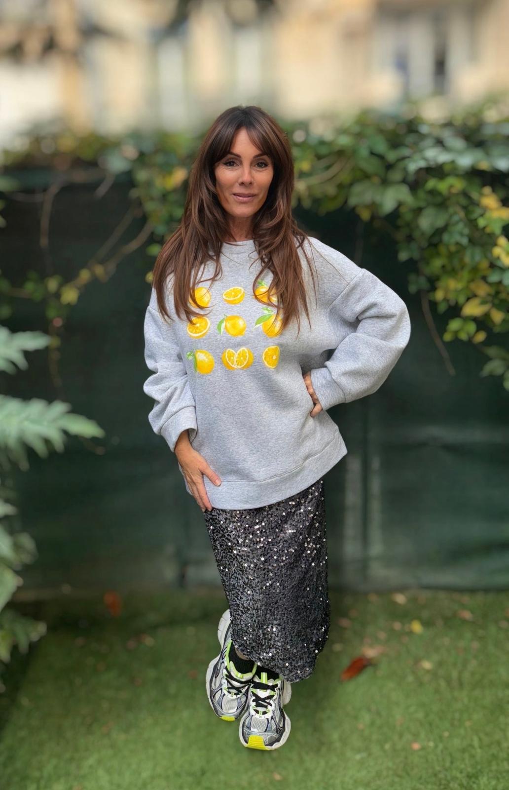 Brillez avec cette jupe midi, taille mi haute, qui épouse la silhouette et vous galbe la silhouette . Cette jupe est votre indispensable pour vos journées avec un pull ou un sweat assortis d’une paire de basket comme pour vos soirées festives. Sa coupe classique et les sequins en font une pièce forte pour un look glamour.
