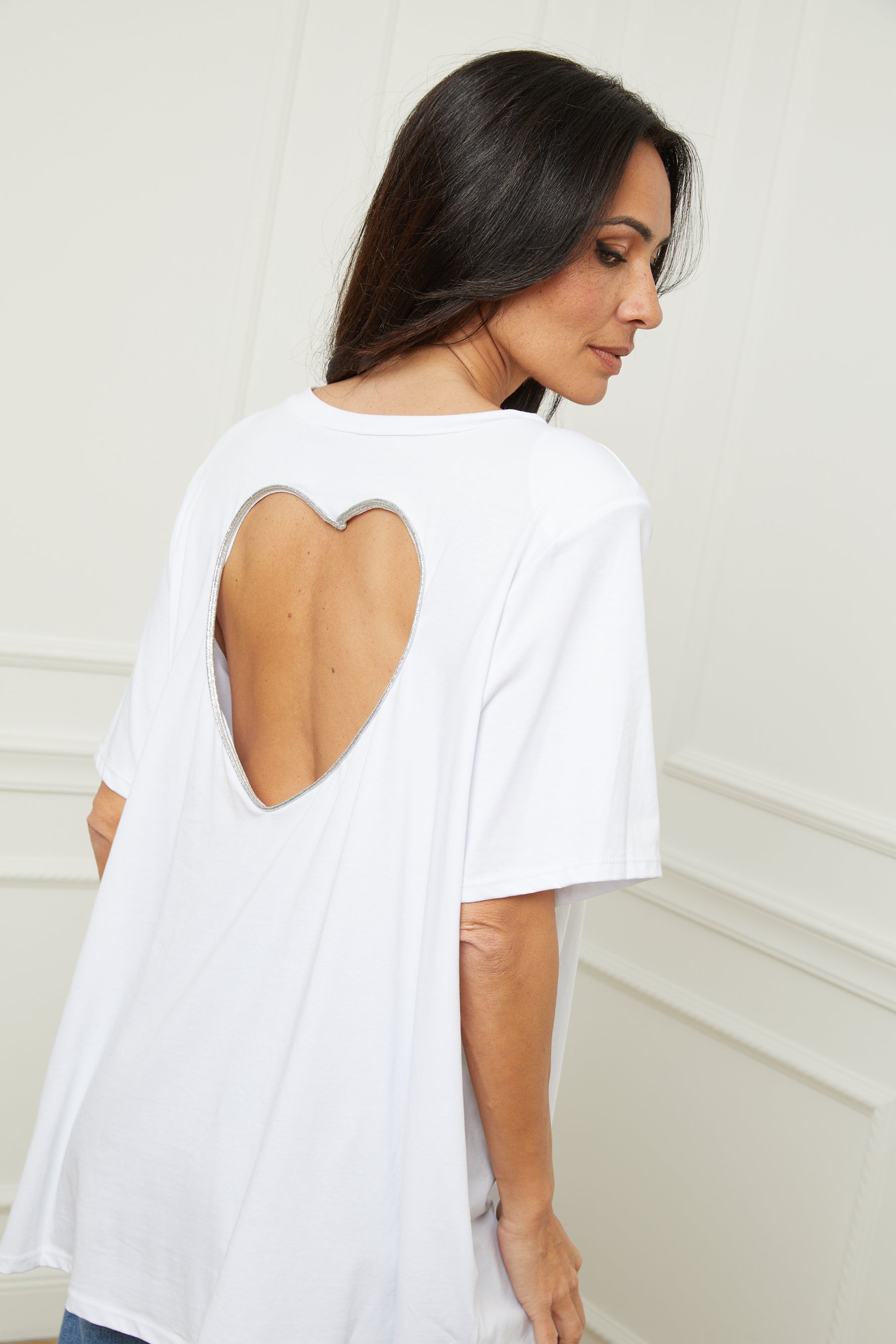 Dans le dos, une découpe en forme de cœur délicatement soulignée d’un liseré brillant dévoile subtilement la peau et apporte une note glamour et romantique à cette pièce du quotidien.